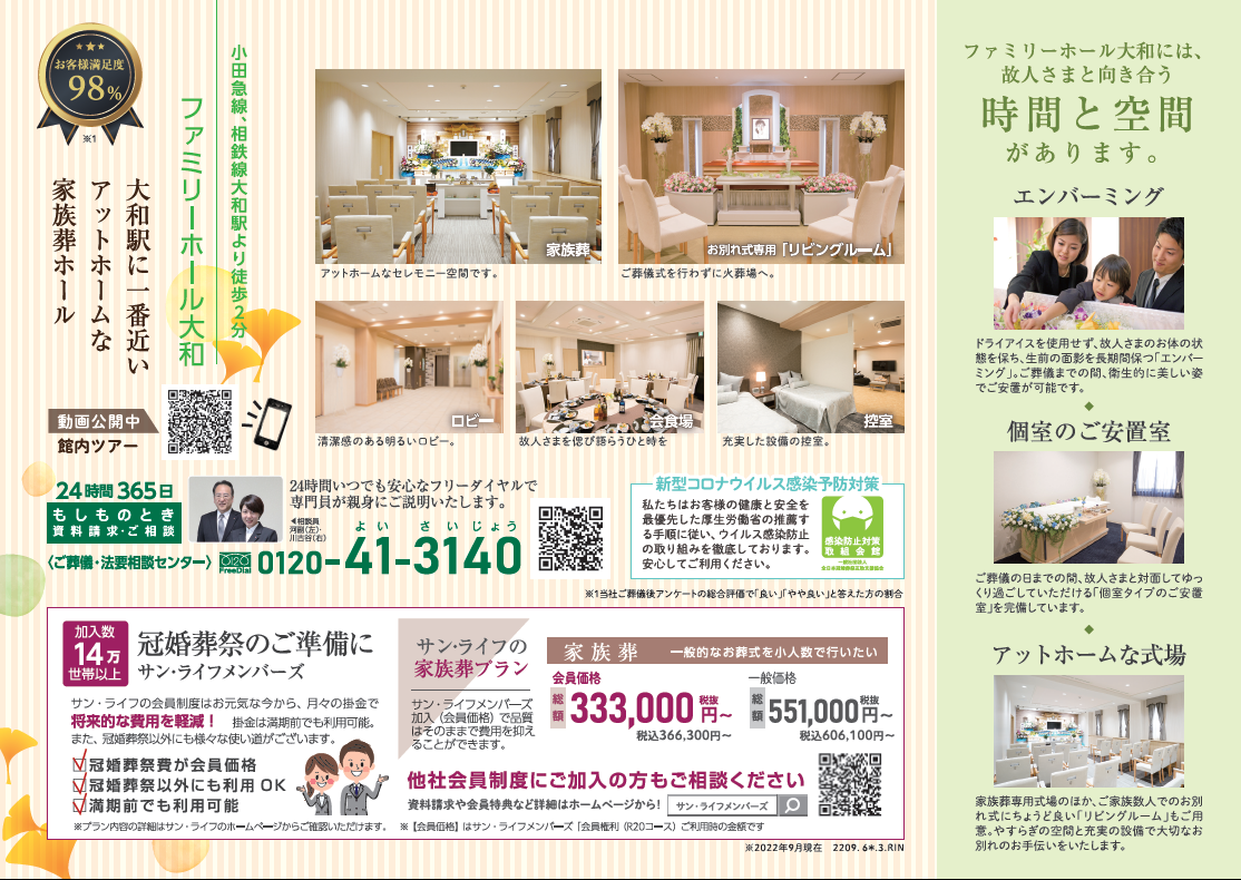 サン・ライフTOP ご葬儀展示会・イベント一覧 【9月17日(土)開催】感謝祭(ファミリーホール大和)