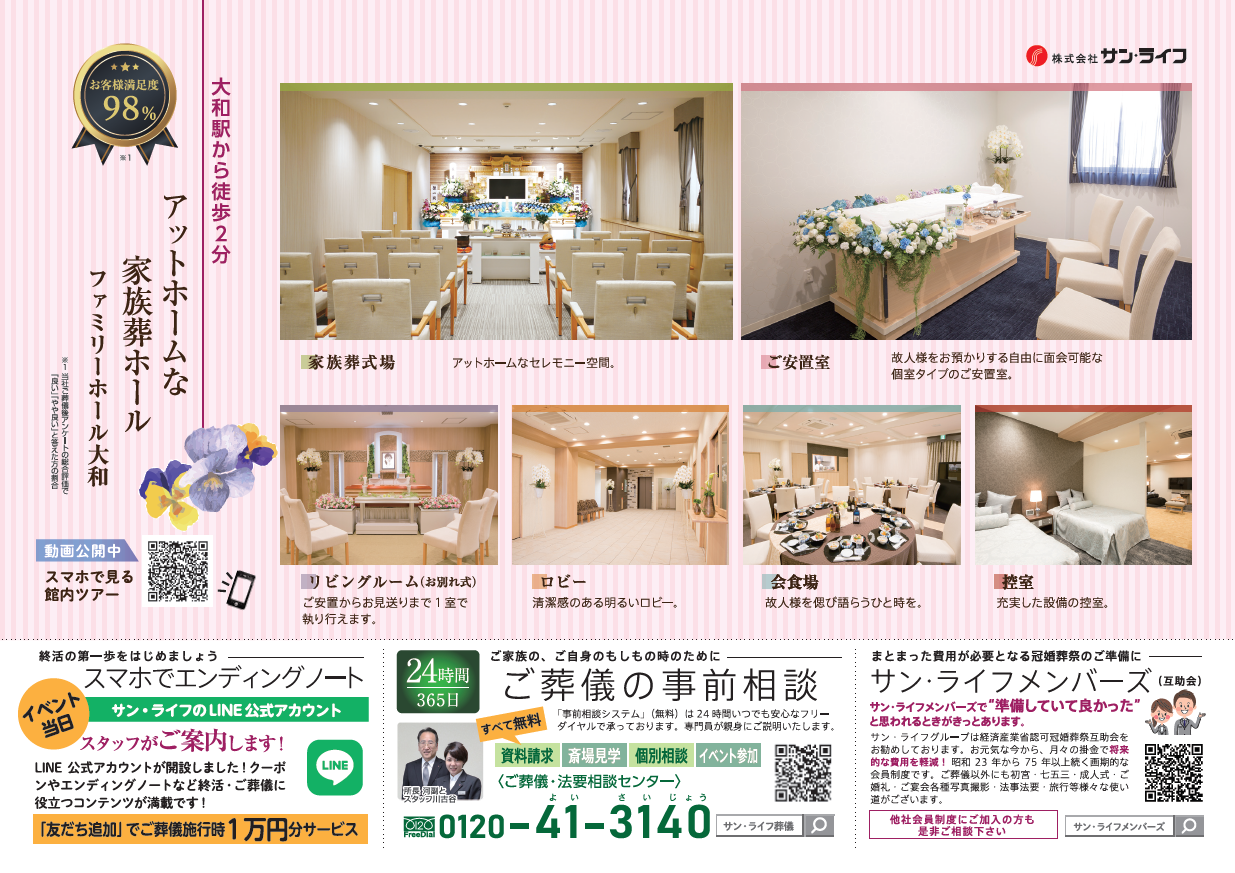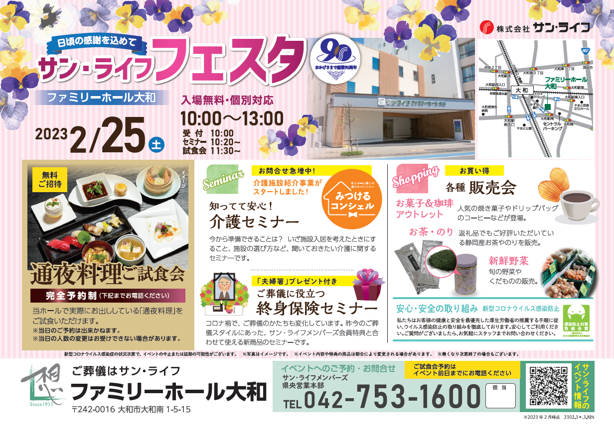 サン・ライフTOP ご葬儀展示会・イベント一覧 【2月25日(土)開催】サン・ライフ フェスタ(ファミリーホール大和)