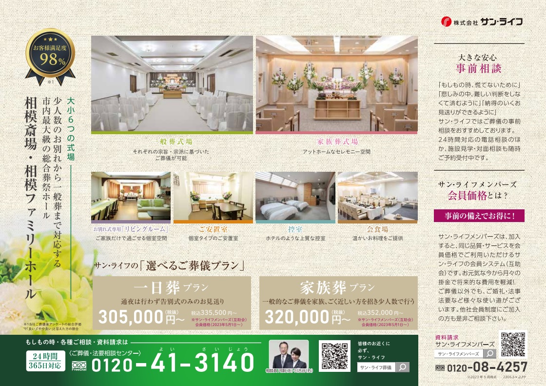サン・ライフTOP ご葬儀展示会・イベント一覧 【5月27日(土)開催】サン・ライフフェスタ(相模斎場)