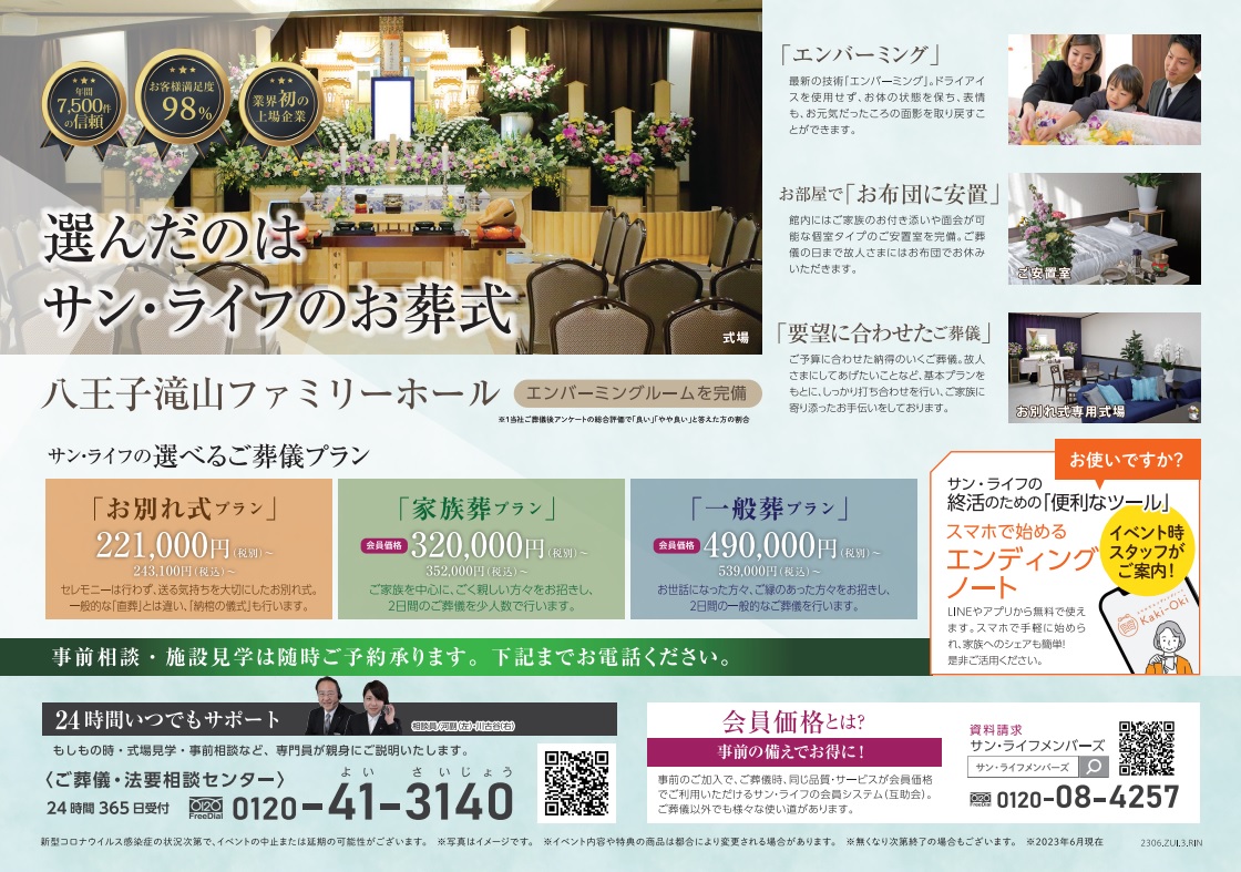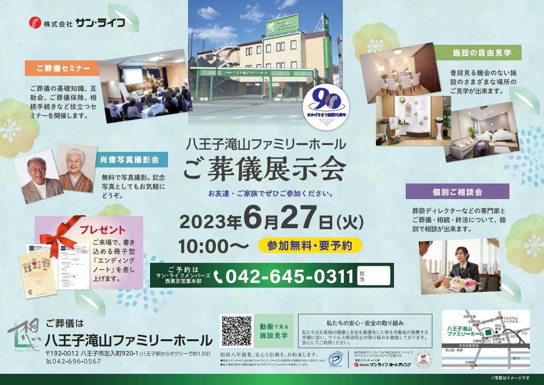 【6月27日(火)開催】 ご葬儀展示会(八王子滝山ファミリーホール) - 葬儀、家族葬なら株式会社サンライフ 【公式】