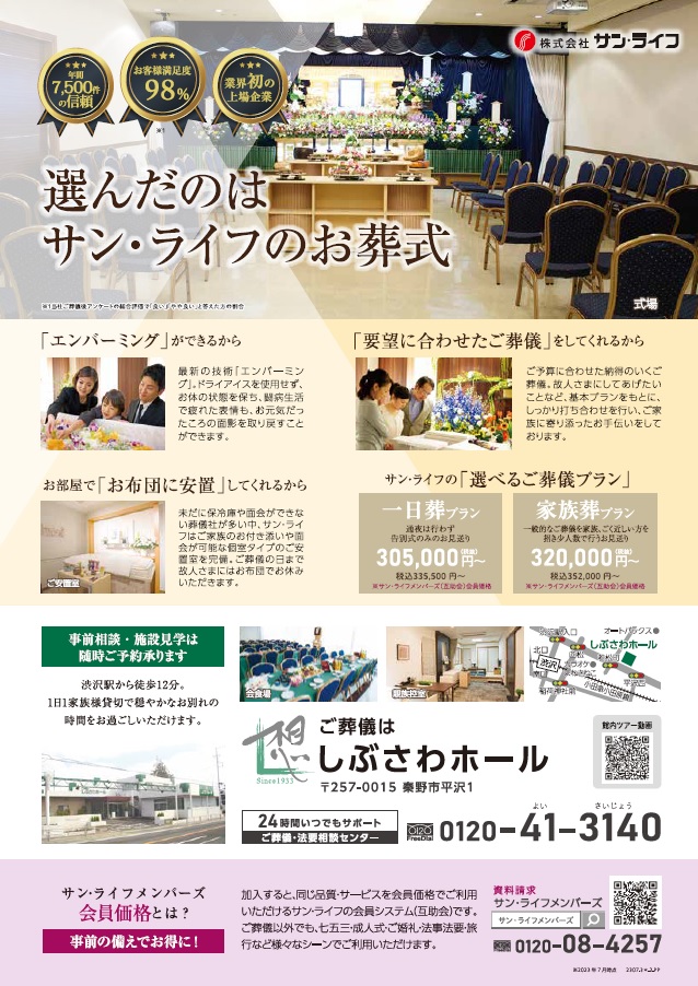 サン・ライフTOP ご葬儀展示会・イベント一覧 【7月26日(水)開催】夏祭り(しぶさわホール)