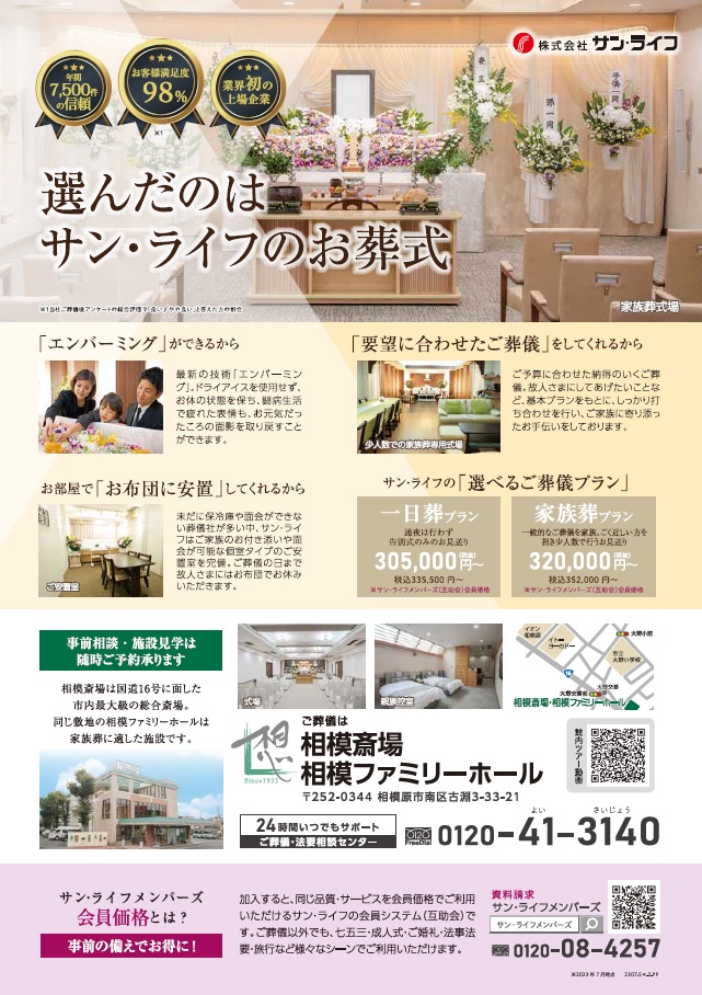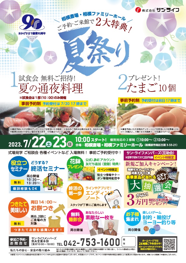 サン・ライフTOP ご葬儀展示会・イベント一覧 【7月22日(土)開催】感謝祭(相模斎場)