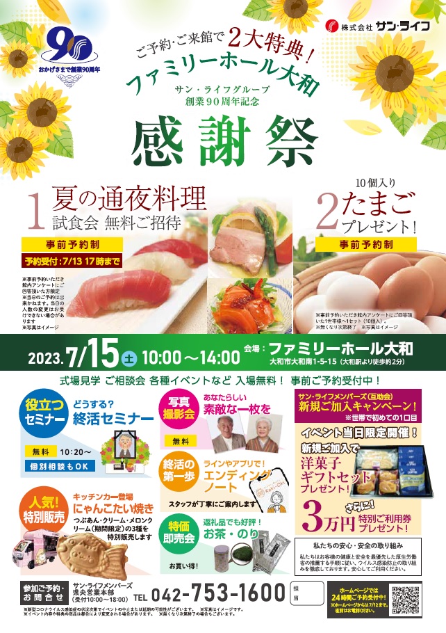 - ■【7月23日(日)開催】感謝祭(相模斎場)