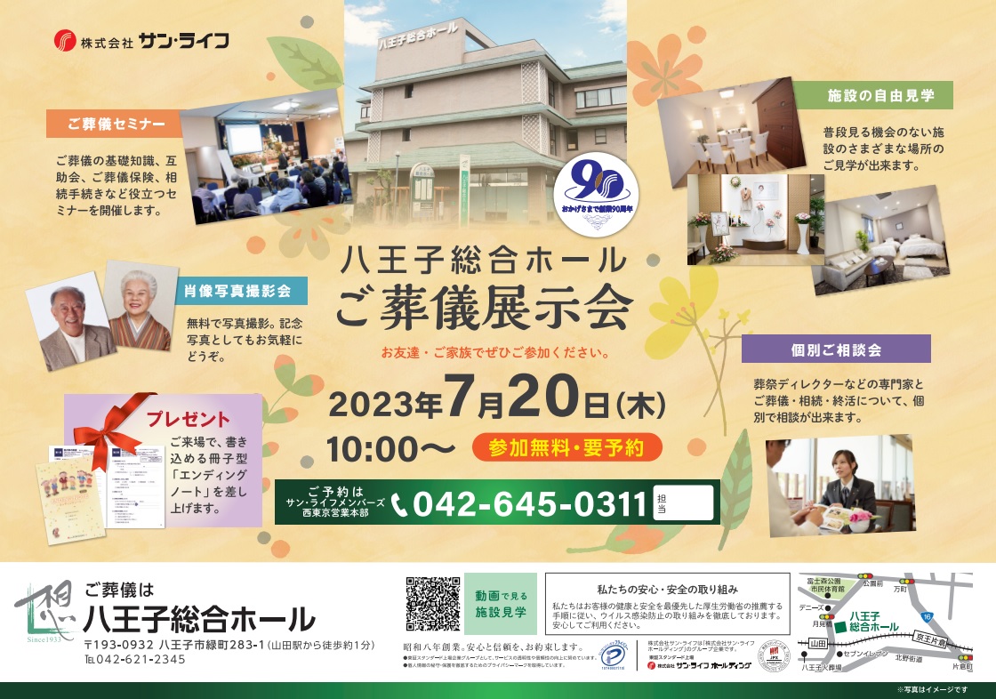 サン・ライフTOP ご葬儀展示会・イベント一覧 【7月20日(木)開催】 ご葬儀展示会(八王子総合ホール)