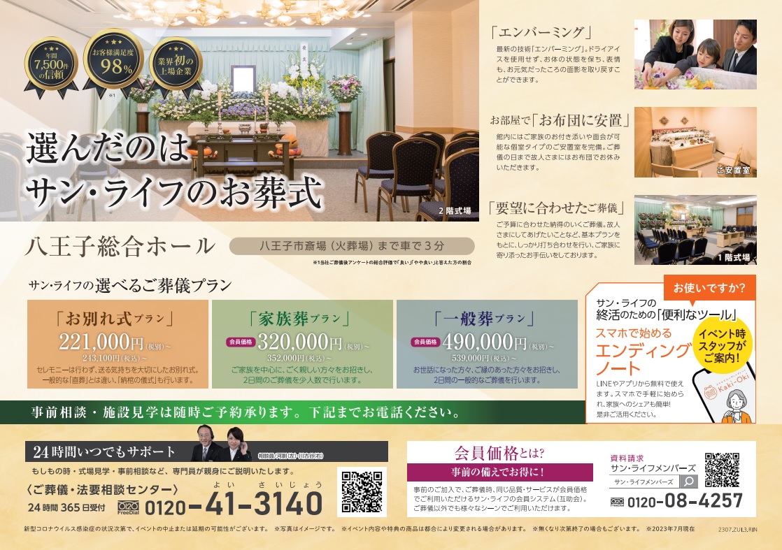 【7月20日(木)開催】 ご葬儀展示会(八王子総合ホール)のお申し込み