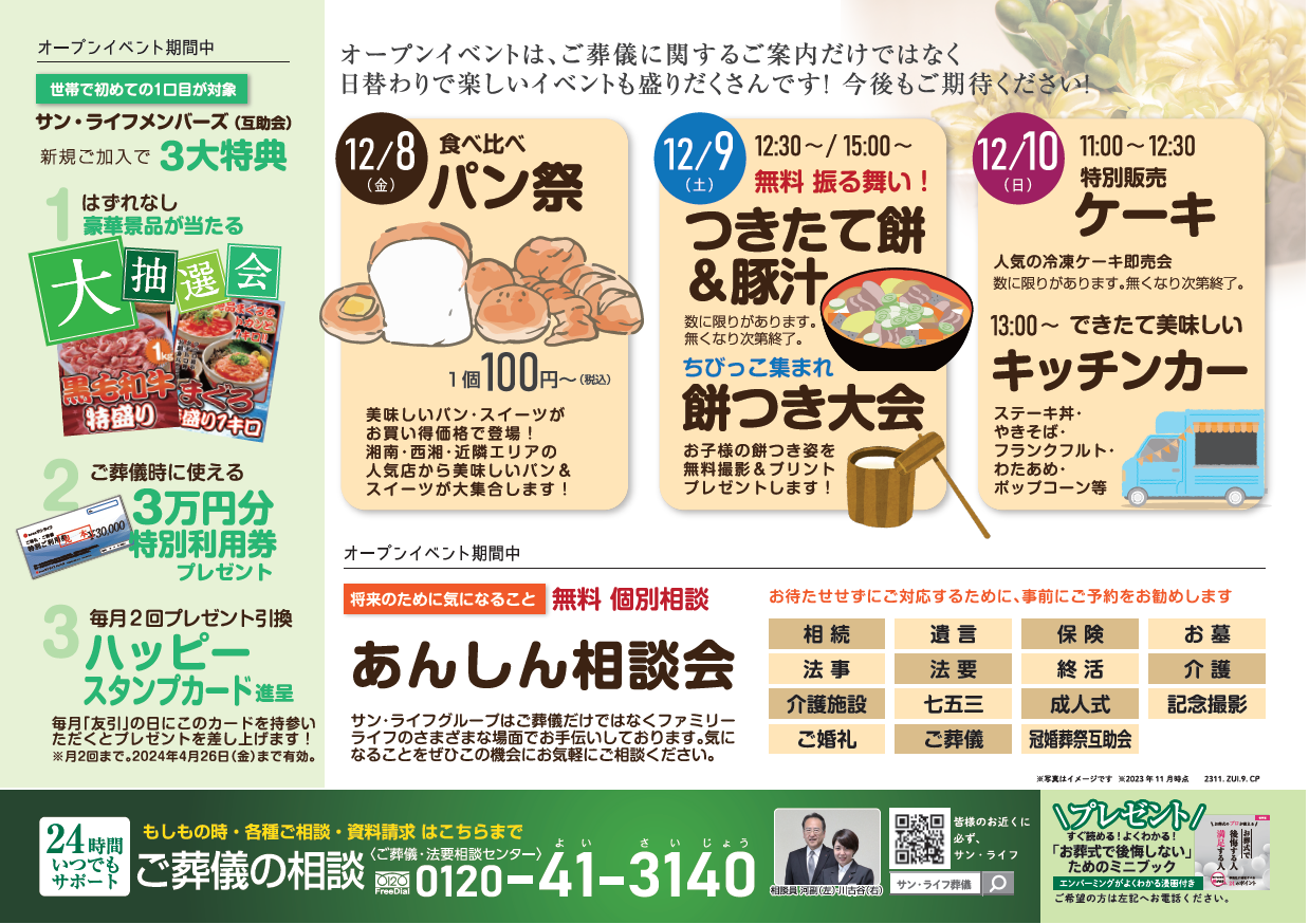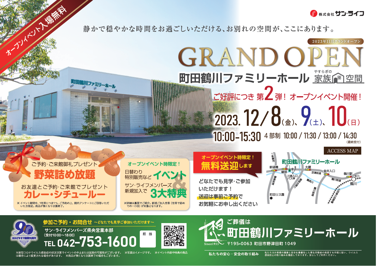 サン・ライフTOP ご葬儀展示会・イベント一覧 【12月9日(土)開催】オープンイベント(町田鶴川ファミリーホール)