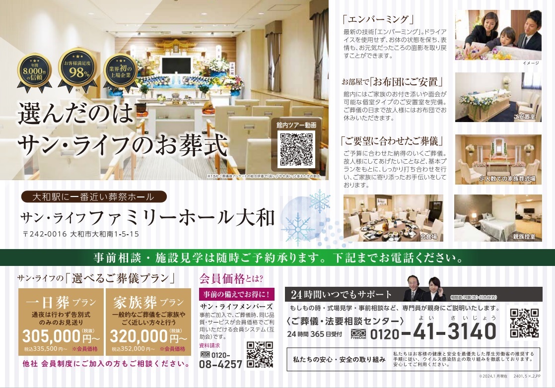 - ■【1月13日(土)開催】 サン・ライフ ご葬儀展示会(ファミリーホール聖蹟桜ヶ丘)