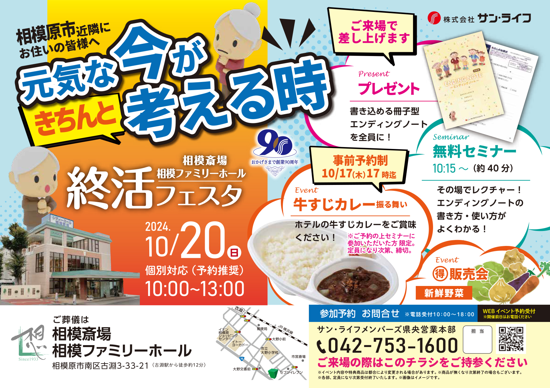 【10月20日(日)開催】サン・ライフ 終活フェスタ(相模斎場) - 葬儀、家族葬なら株式会社サンライフ 【公式】