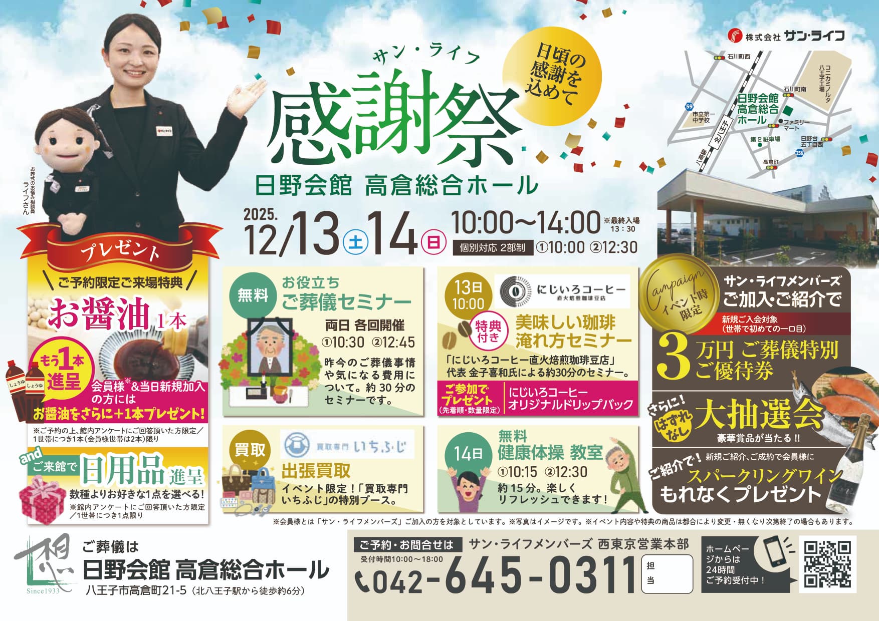 サン・ライフTOP ご葬儀展示会・イベント一覧 【12月13日(土)開催】感謝祭(日野会館 高倉総合ホール)