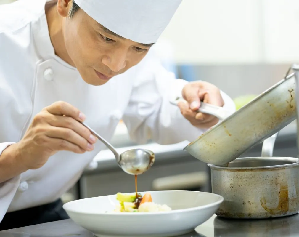 ホテルサンライフガーデンをはじめとするサン・ライフグループのホテル・結婚式場のお料理も手掛ける料理長が、四季折々にあわせてこだわりのメニューでおもてなしいたします。
