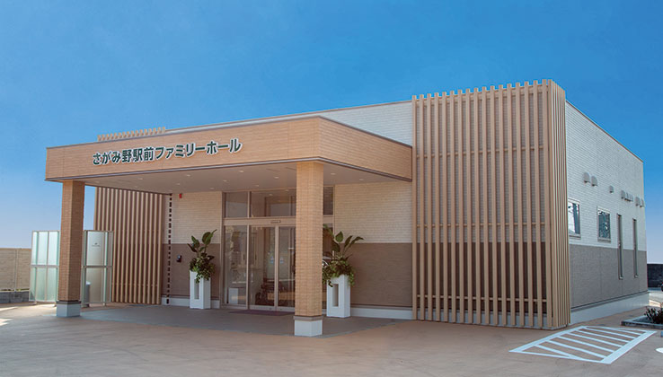 海老名市のサン・ライフ直営の家族葬式場です。 相鉄線「さがみ野駅」南口より徒歩3分のアクセスの良い、コンパクトにまとまった過ごしやすい式場です。