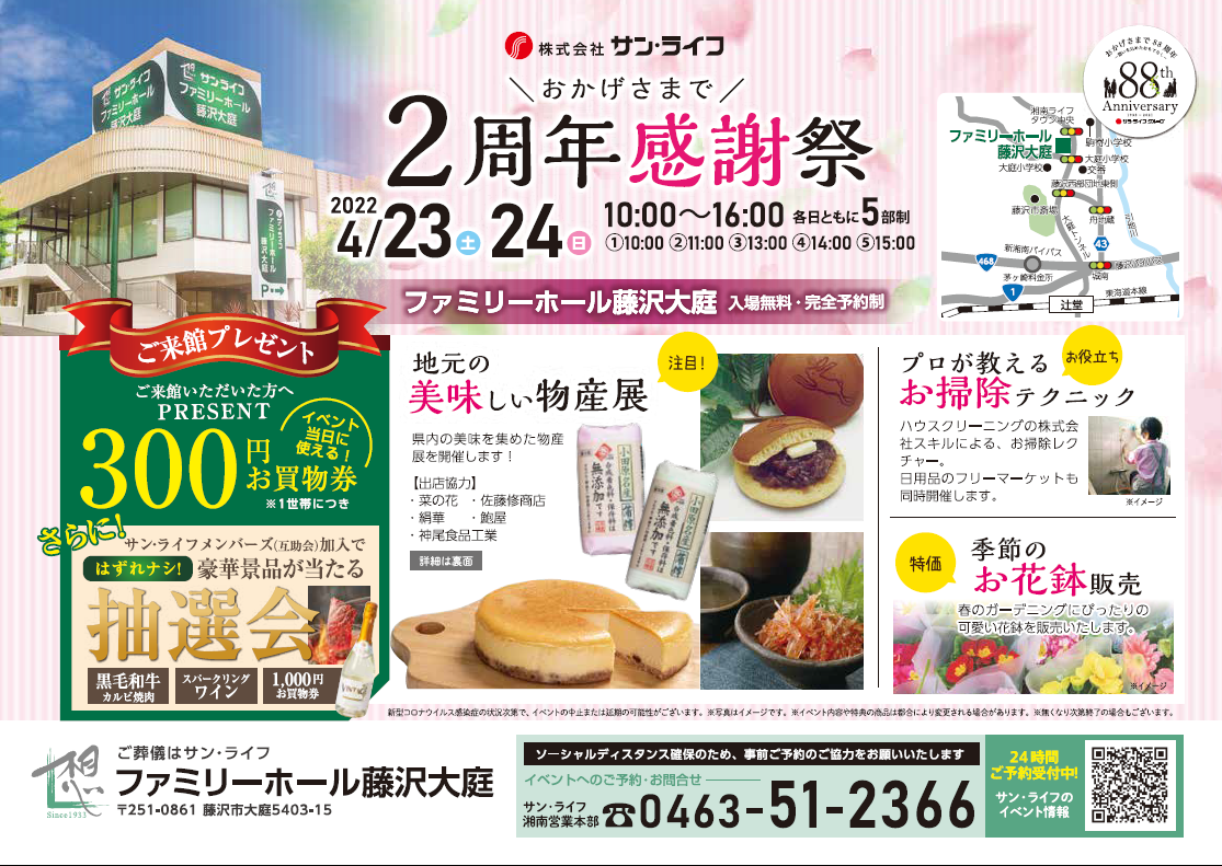 心配事がございましたら是非一度、ファミリーホール藤沢大庭にご来館下さいませ。