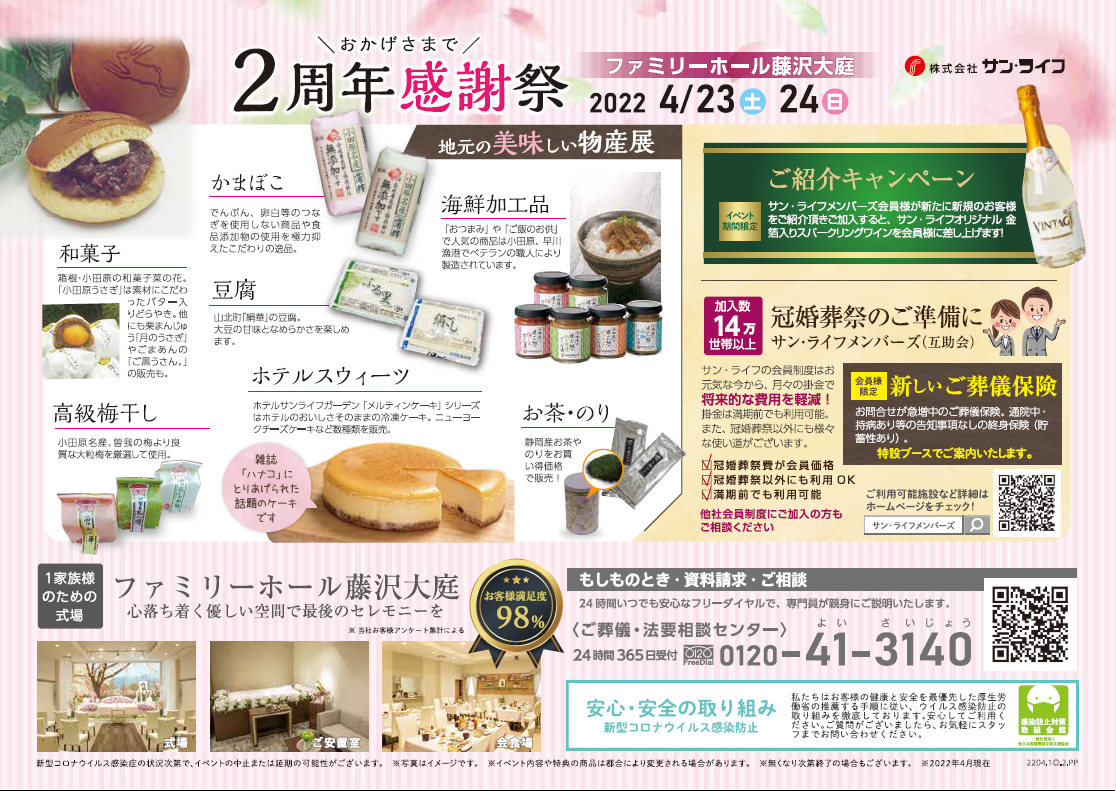 ホールでは4月23日(土)4月24日(日)にて2周年感謝祭を開催しております。