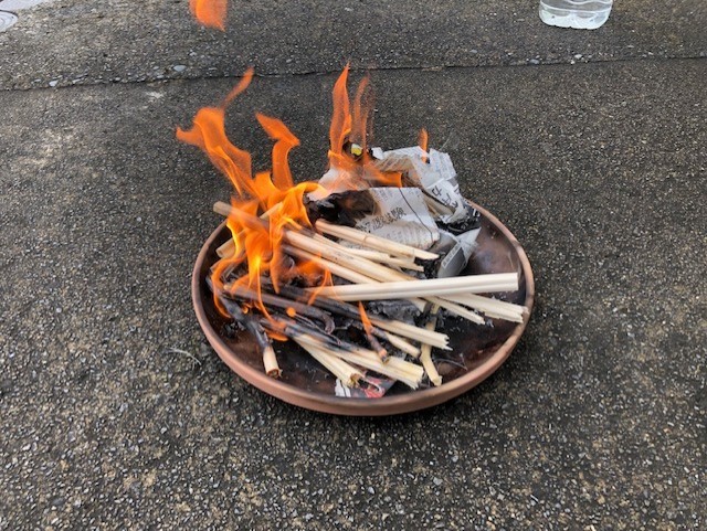13日の夕方に家の前でほうろく(素焼きの皿)の上で、おがらを焚いて、