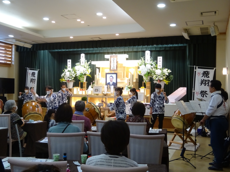 マスクペイントの後は、地元 飛翔祭太鼓の皆様による迫力の演奏。