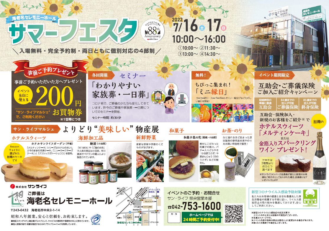 神奈川の物産展・お子様にも喜んで頂けるミニ縁日・ご葬儀セミナーを予定しております。