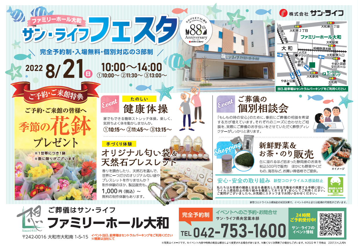 真夏の夏休み期間!ファミリーホール大和ではフェスタを開催いたします!