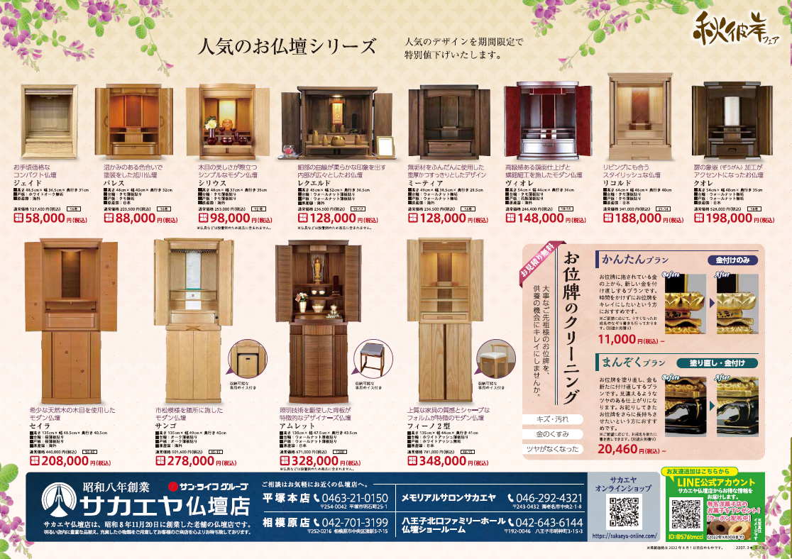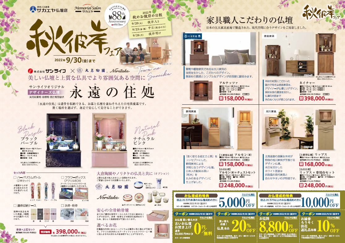 今回は、2022年9月30日までの期間、秋彼岸フェアを行いますので、ご案内をさせていただきます。