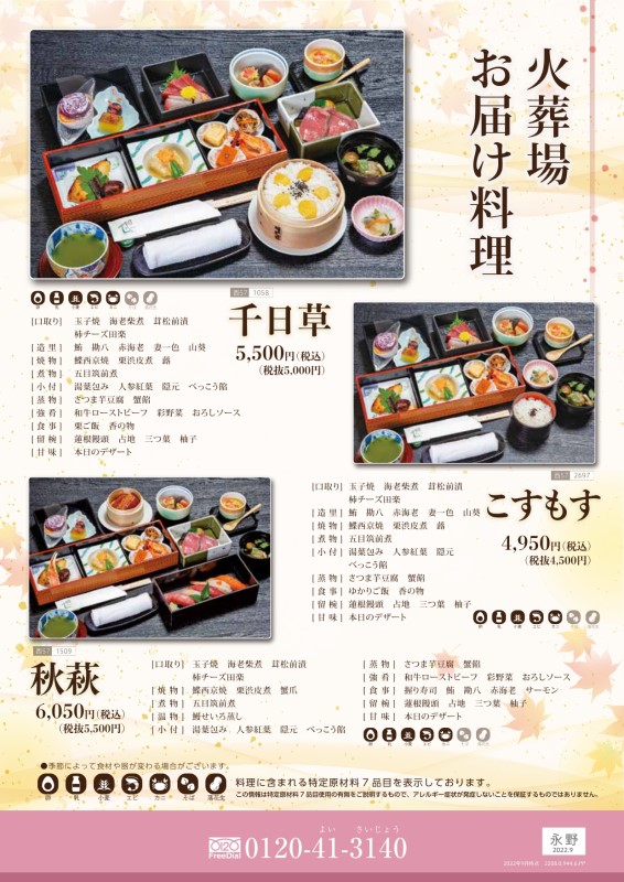 また、火葬場での忌中料理のケータリングのご提供もしております。