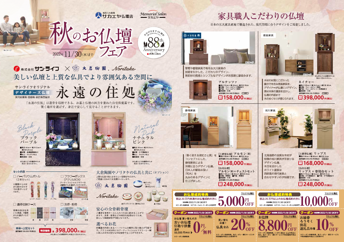 【秋のお仏壇フェア】を行いますのでご案内をさせていただきます。