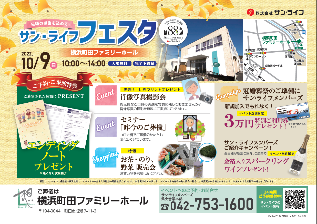 サン・ライフフェスタを10月9日(日)に開催させていただきます。