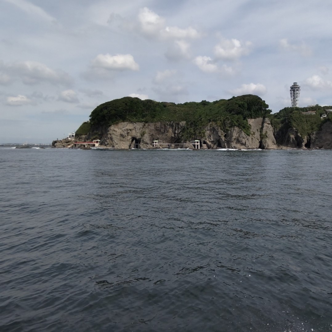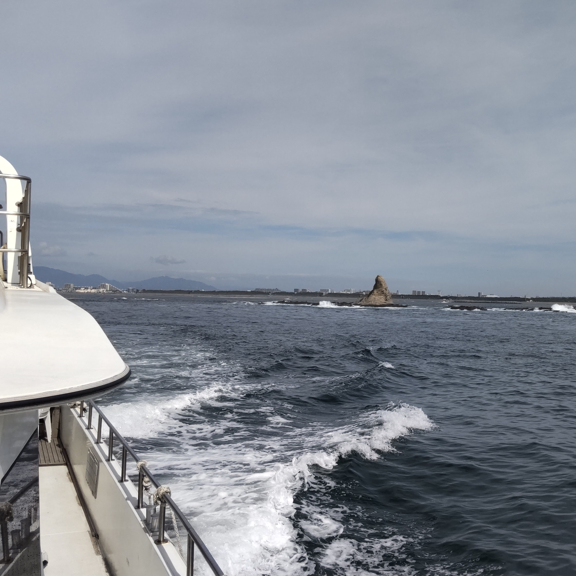 散骨後は茅ヶ崎沖の烏帽子岩経由の江ノ島。そして発着場所の平塚新港へ。
