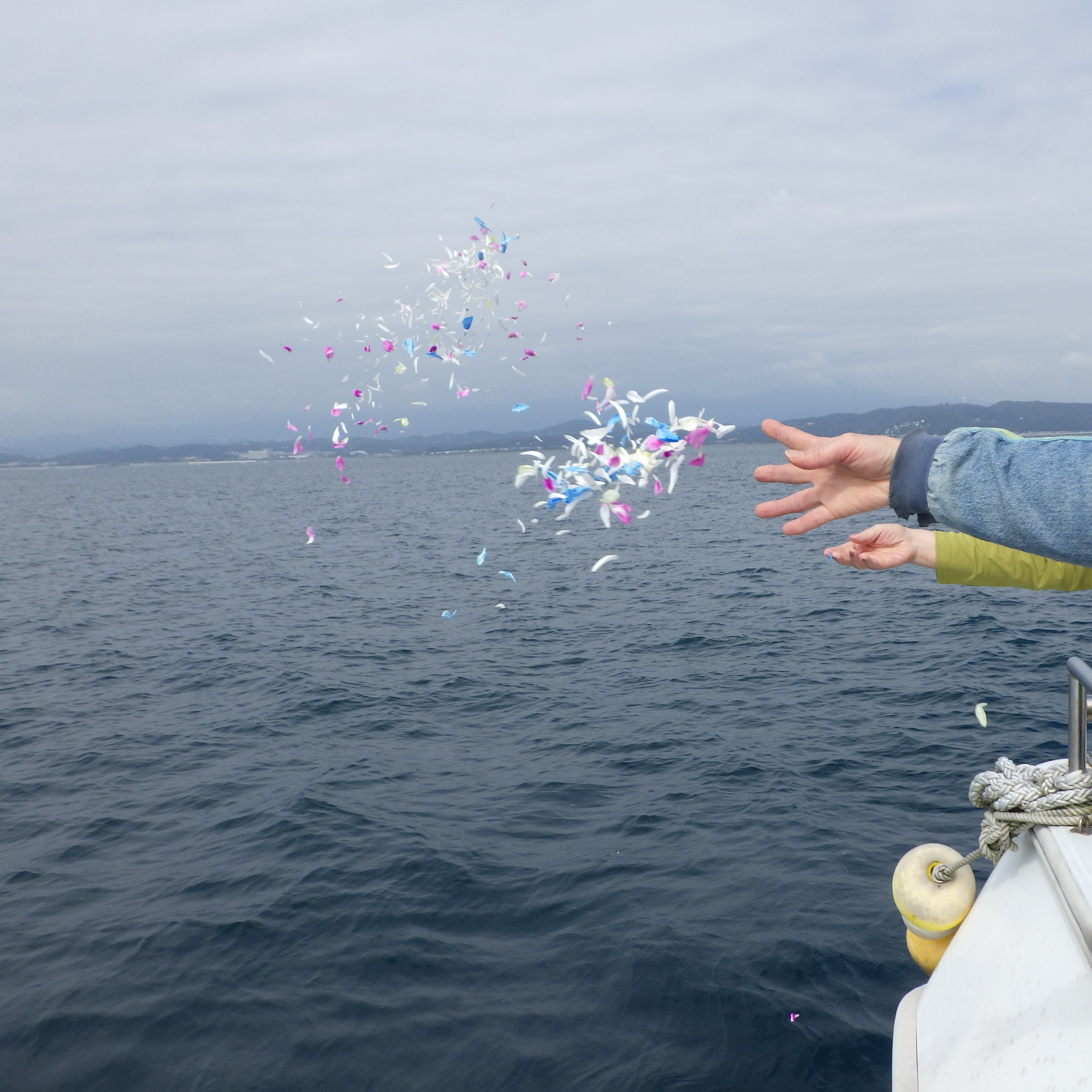 「今回は合同散骨式」ということで複数のご家族の皆様にご乗船頂き執り行わせていただきました。