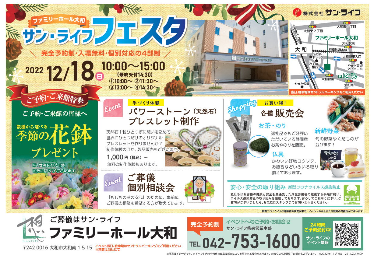 ファミリーホール大和では12月18日(日)にフェスタを開催いたします。