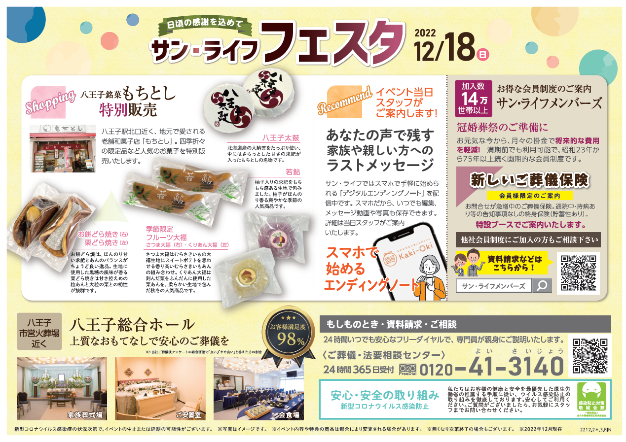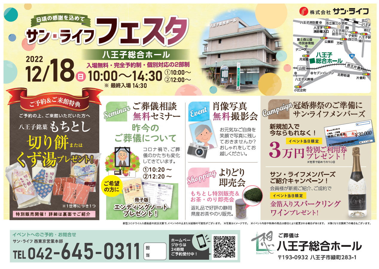 12月18日(日)に『サン・ライフ フェスタ』を八王子総合ホールにて開催致します。