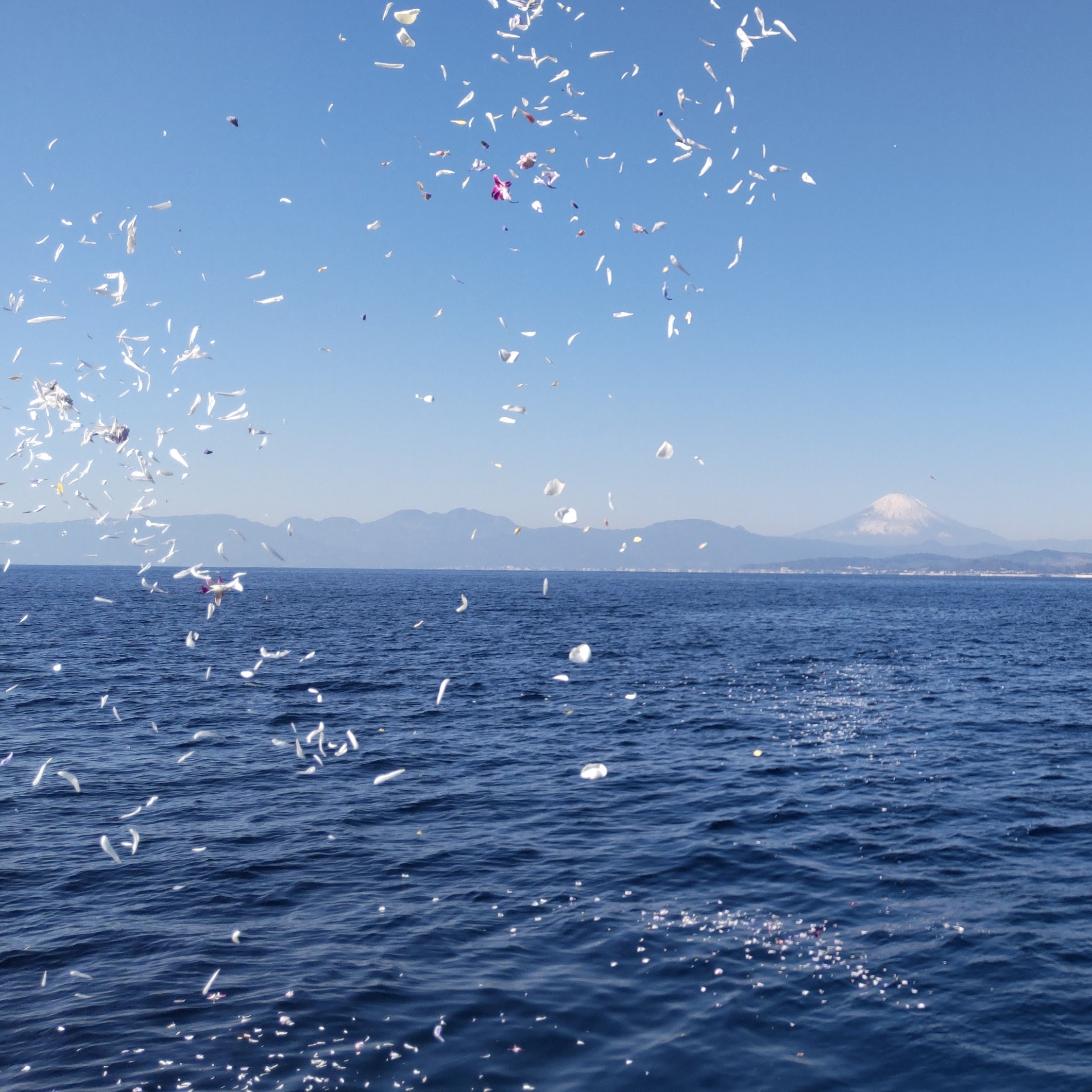 さて、先日の晴れた冬の相模湾に於いて、「海老名市在住のM.S様ご家族様」の散骨式を執り行いました。