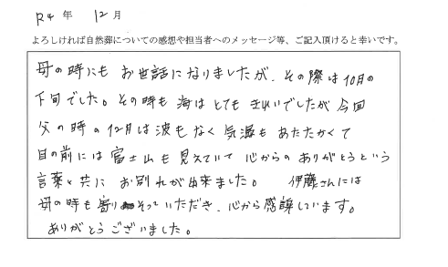 ご家族様にとって、素敵なご散骨式が出来たことを我々スタッフ一同も喜んでおります。