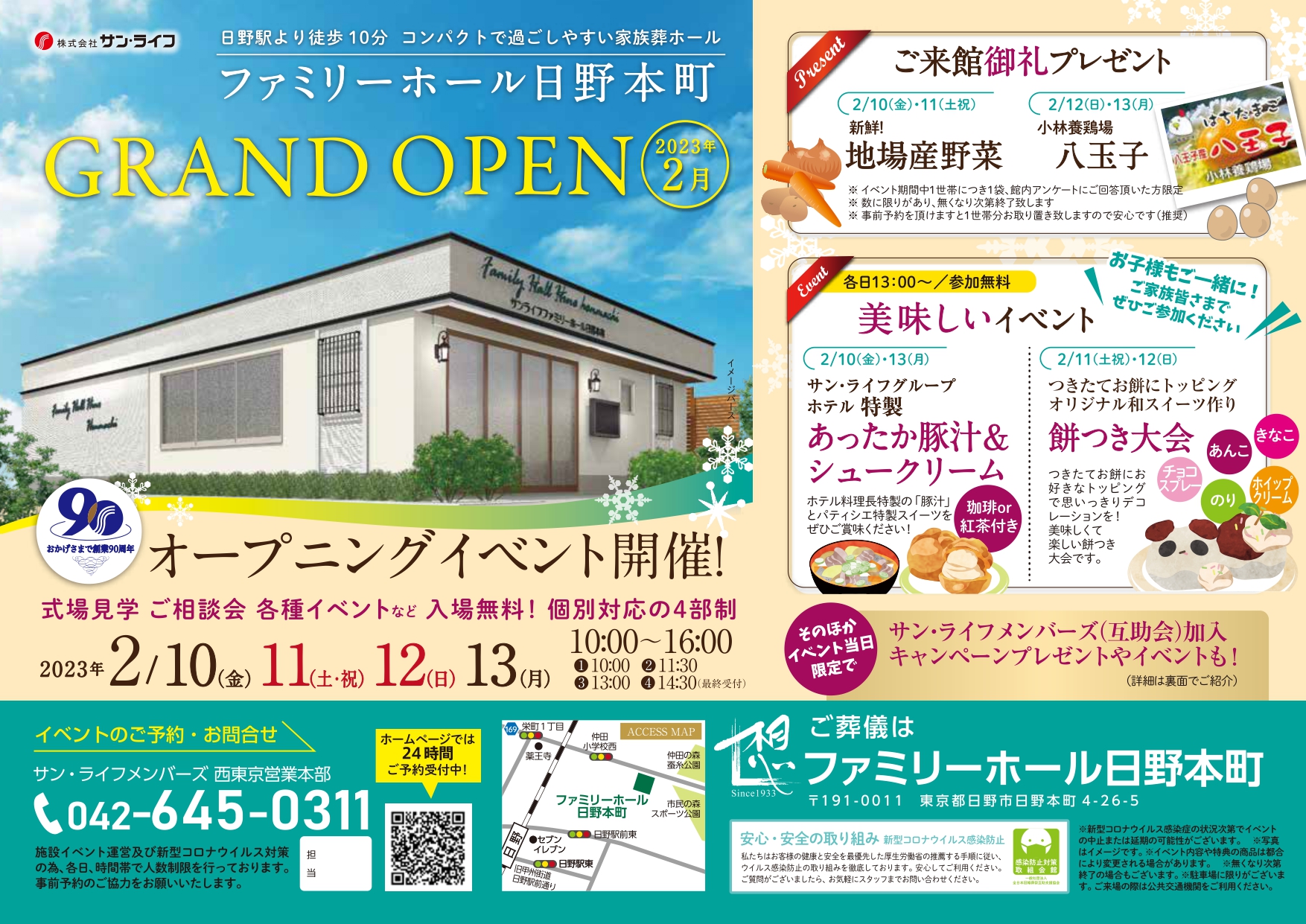 当社の新しい施設『ファミリーホール日野本町』がオープンする事になりました。