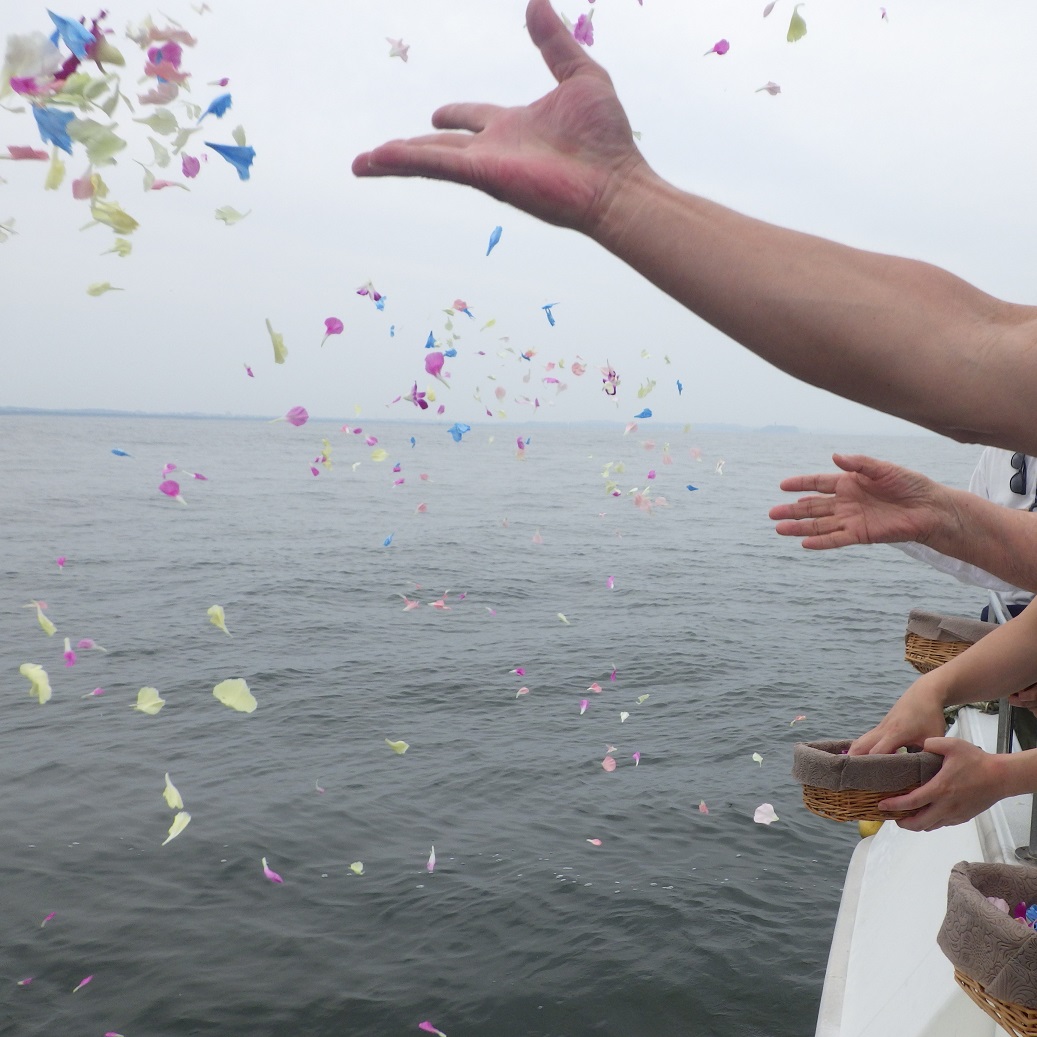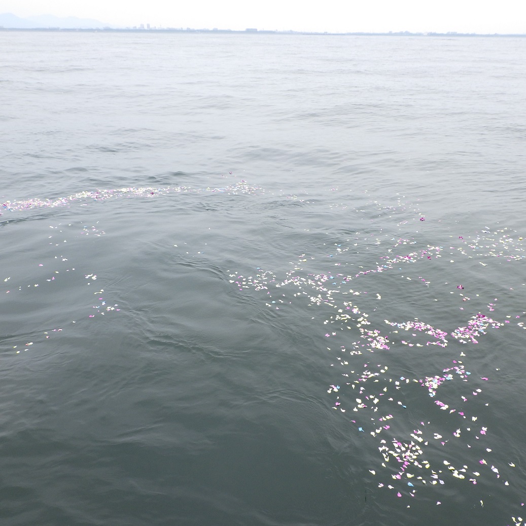 先日もどんよりと曇った重たい色の空の下、相模湾沖合に於いて散骨式を実施させていただきました。