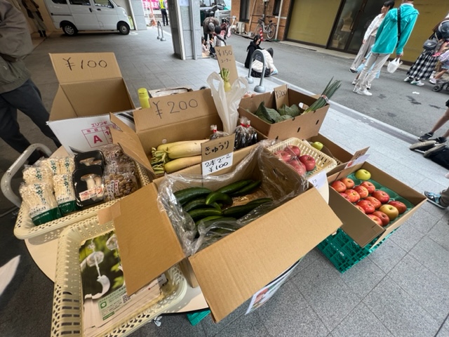 この日も、新鮮野菜・果物販売、ろうそく線香・数珠などを大特価販売、
