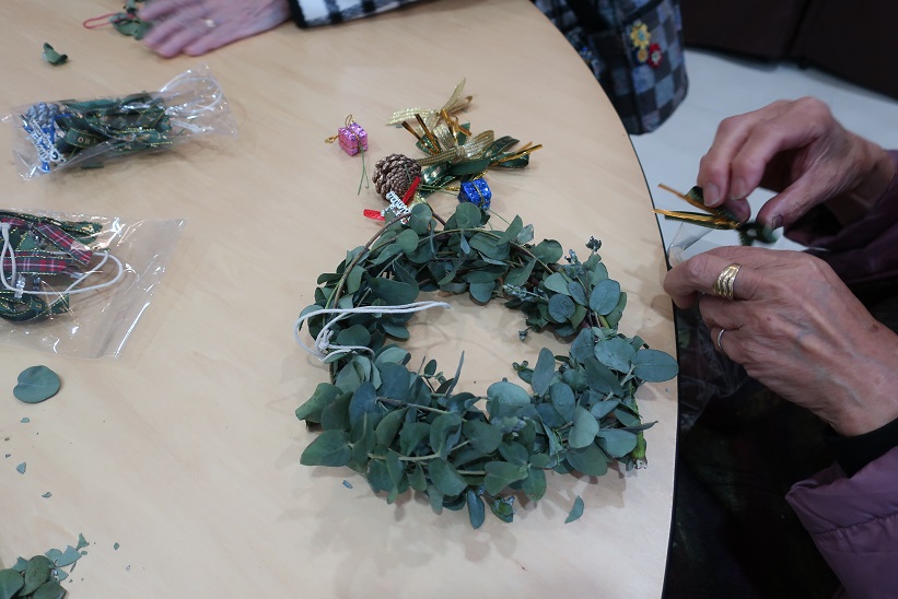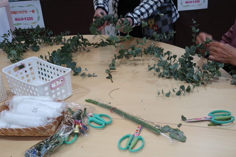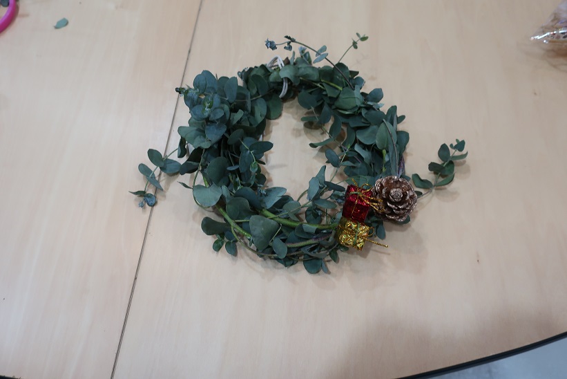 今回は生のユーカリの枝葉を使用したオリジナルグリーンリース作りでしたが、
