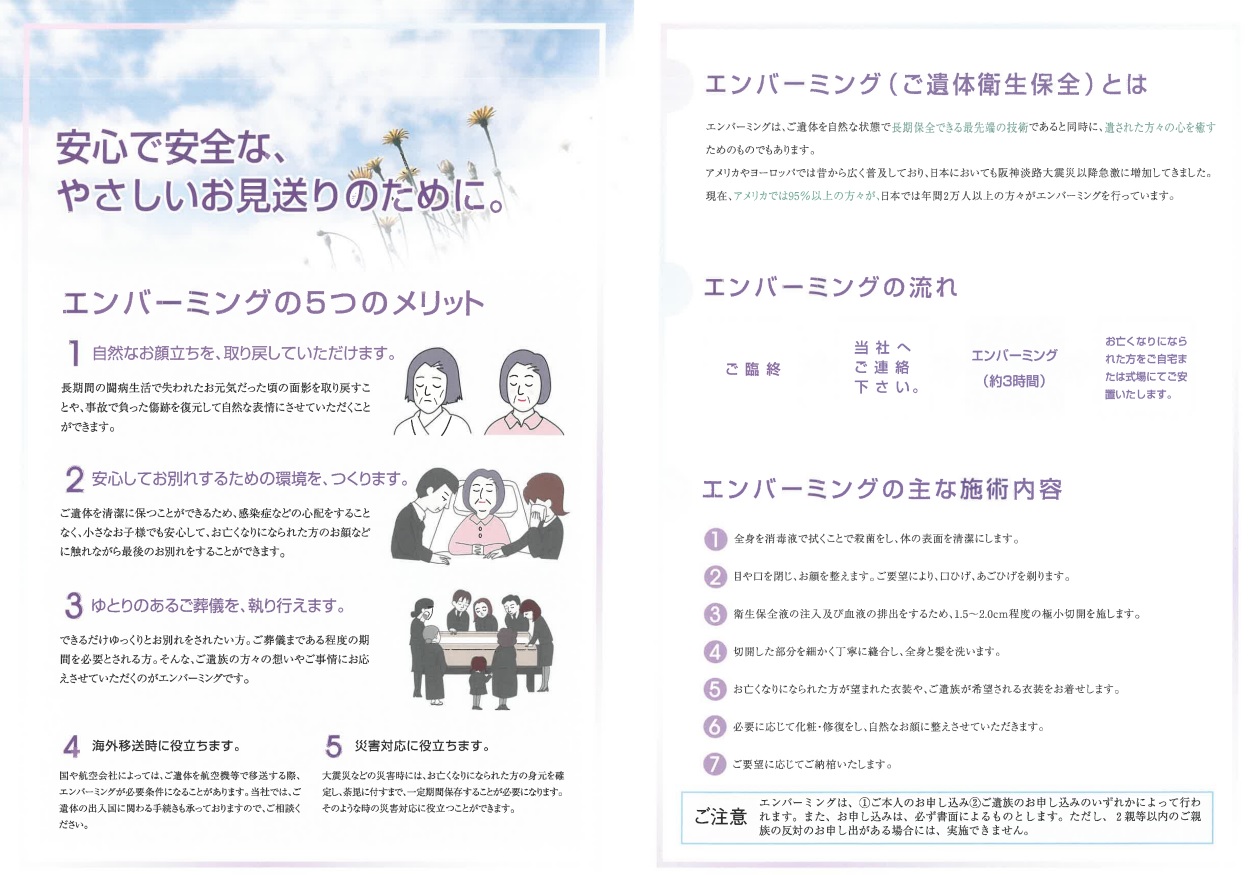 エンバーミングは、サン・ライフが自社で行っており、八王子市内の葬儀社では当社のみの技術になります。