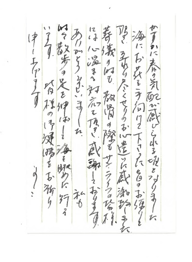 ご丁寧に「お礼のお手紙」をくださるご家族もいらっしゃって