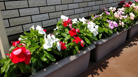 そんな中ホールの日々草は元気いっぱい咲き誇っています。