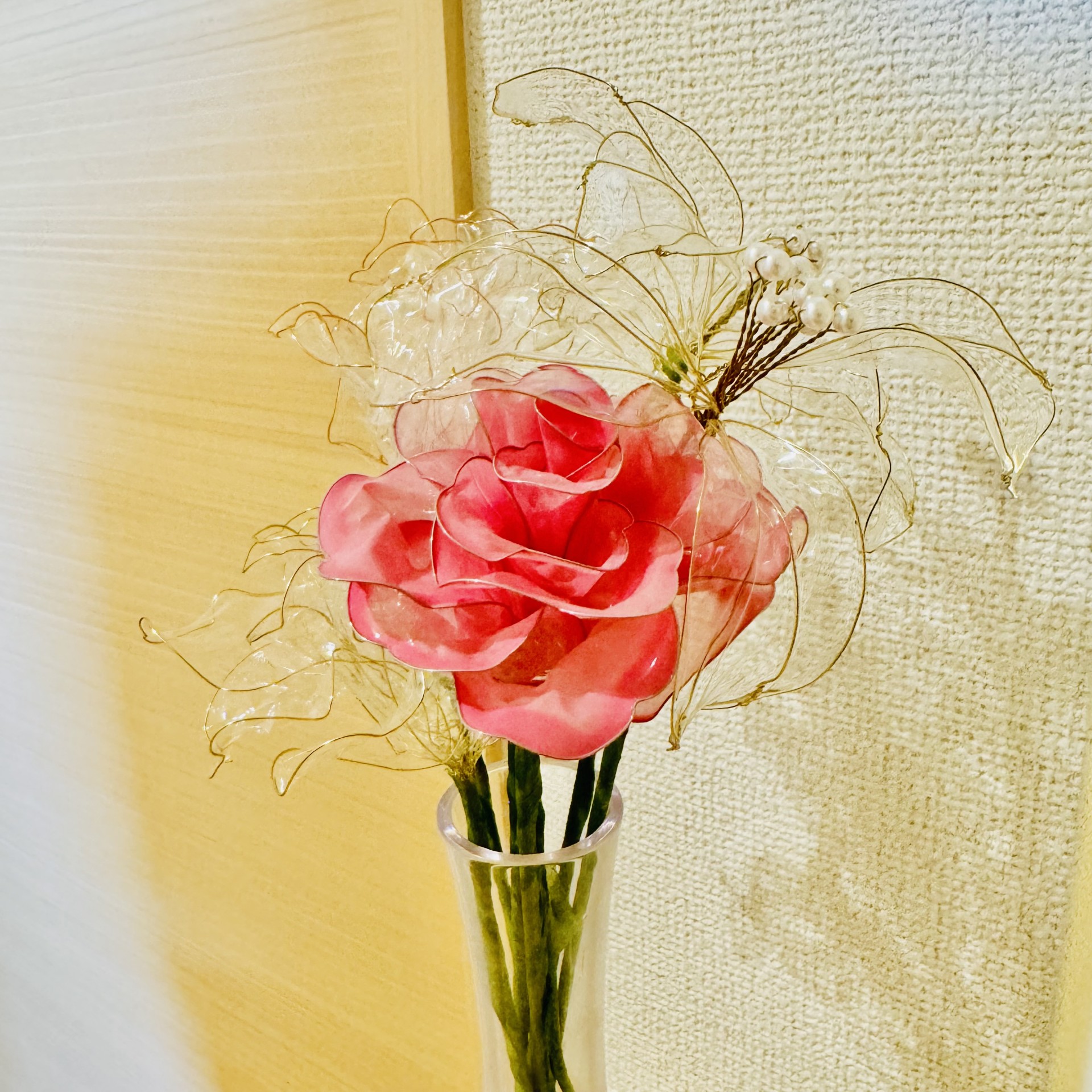 外出しない日は家の中でゆっくり涼みながらアメリカンフラワーの作成に励んでおります。