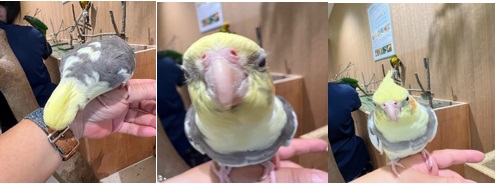 ほとんどの小鳥達は、手のりで指を足首の所に近づけると乗ってくれました。