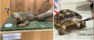出迎えてくれたのは、グリーンイグアナとケヅメリクガメでした。