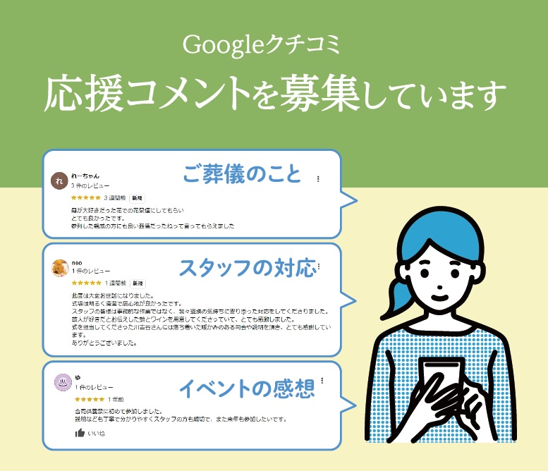 お客様からの大切なお声がスタッフの励みや改善点に繋がると考えており