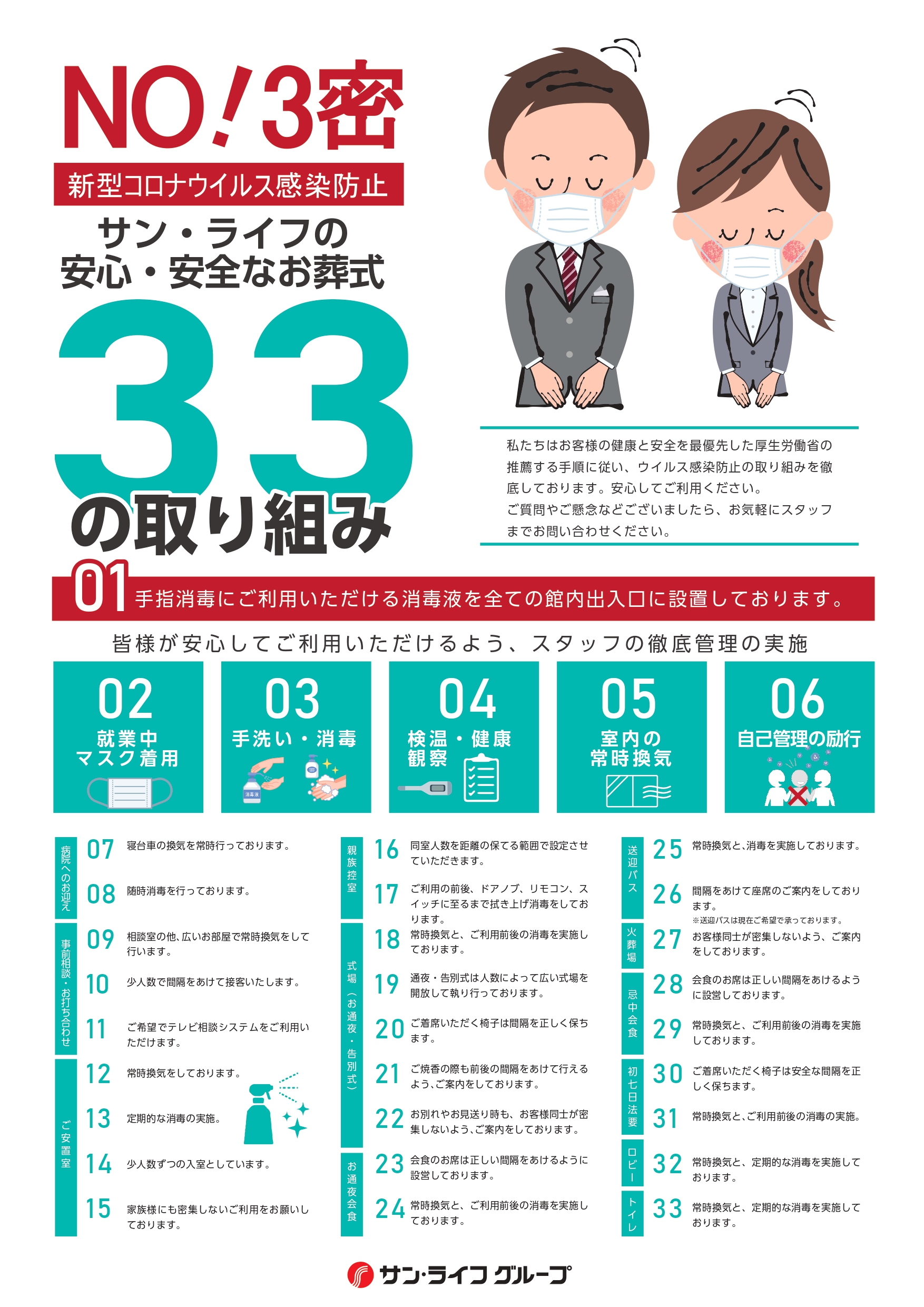 サン・ライフはお客様の安心と安全を最優先した厚生労働省の推薦する手順に従い、