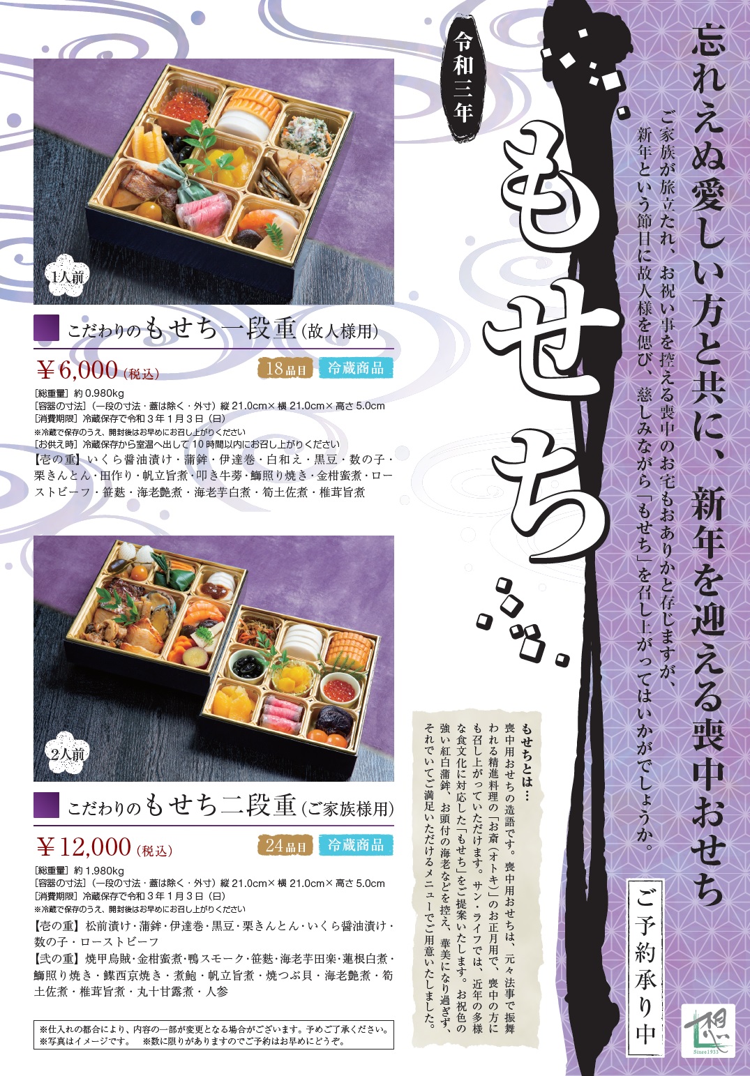 新年という節目に故人様を偲び、慈しみながらも「もせち」を召し上がってはいかがでしょうか?