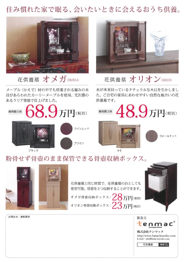 その時のお話しですが、ご葬儀の後喪主様は「花供養墓」という手元供養が出来る【納骨(散骨)+お墓】を購入され、