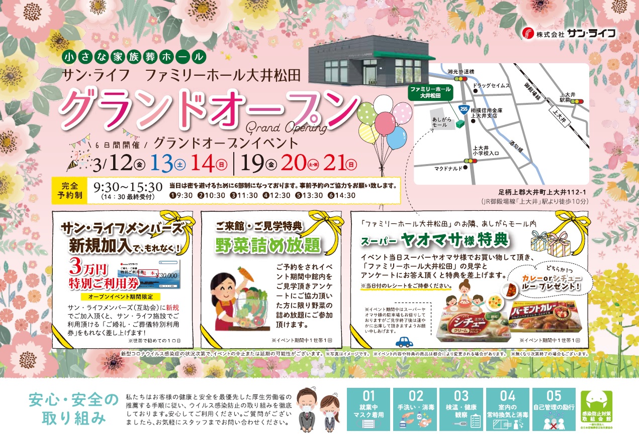 この度、大井町上大井に家族葬向けのファミリーホール大井松田をオープンいたしました。