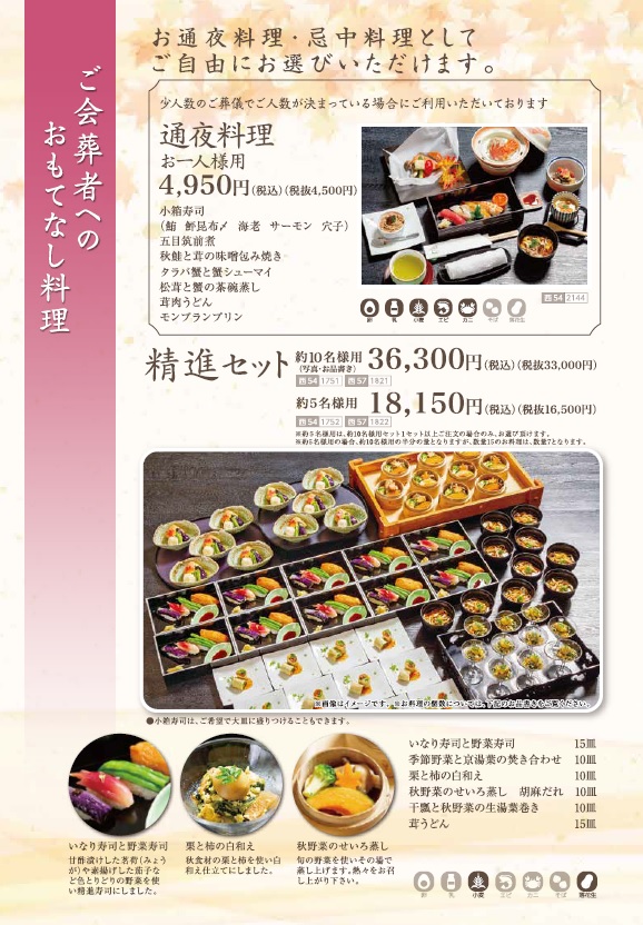 また、火葬場での忌中料理のケータリングのご提供もしております。