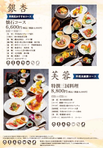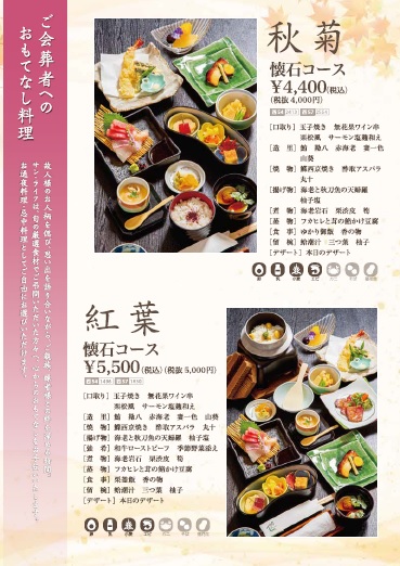 季節によって料理メニューも変わり、四季の食材を取り入れたお料理を提供させて頂いております。