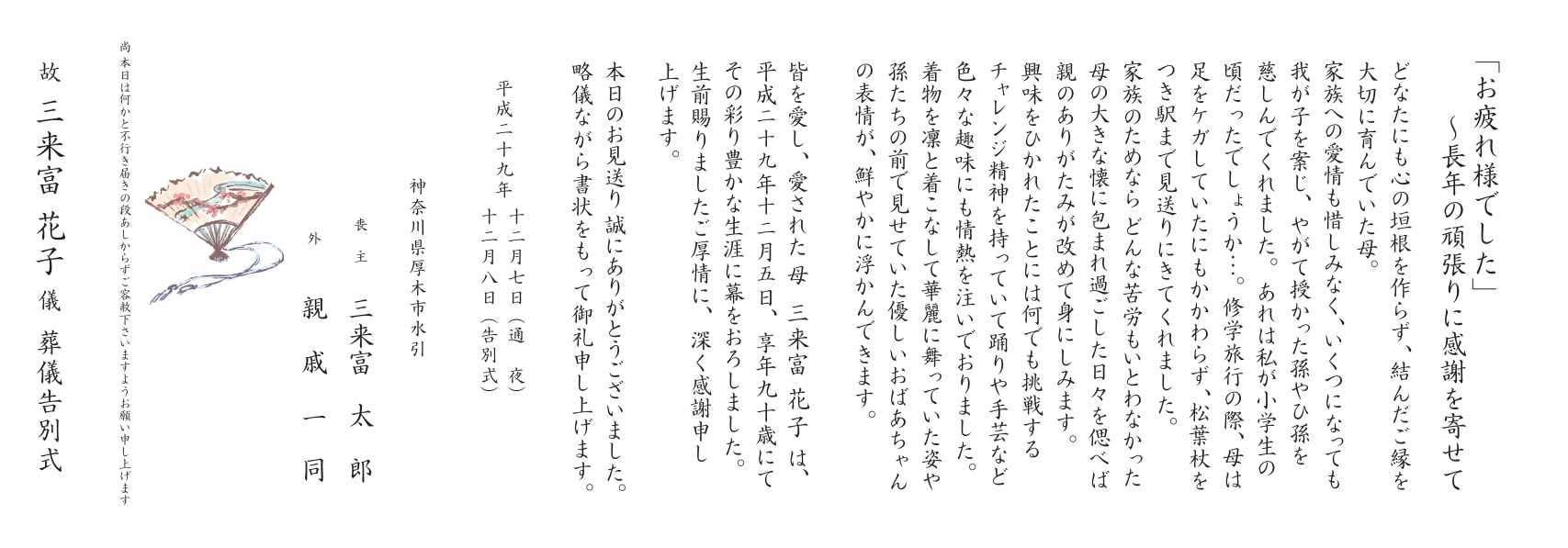 お式の時に使用する「会葬御礼」だけでなく「葬儀後のお知らせ」としても