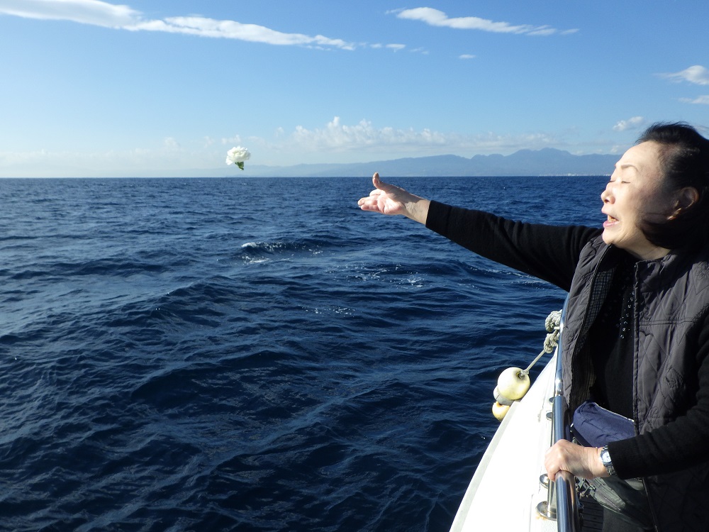 担当の伊藤さんは体験クルーズの時から色々と教えていただきました。当日もしっかりと私たちをリードしてくれたおかげで、とてもスムーズに進めることができました。参加した親族や友人からも「私もこうして欲しい」という声があがり、散骨という供養の一つの在り方を実感しました。